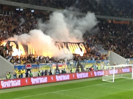 Під час товариського матчу з футболу між збірними України та Чехії уболівальники розгорнули кілька банерів на підтримку української мови.