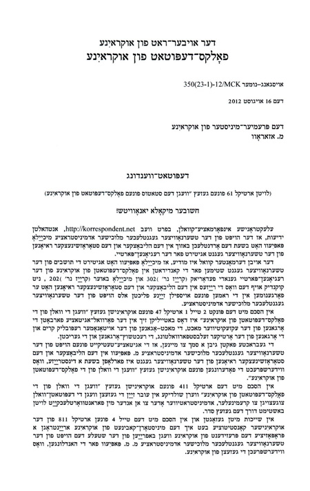 Народний депутат Геннадій Москаль відправив прем’єру Миколі Азарову офіційне депутатське звернення, написане мовою ідиш.