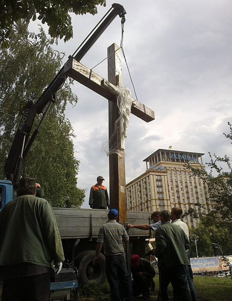 Як відомо, 17 серпня активістки Femen спиляли бензопилою і повалили хрест жертвам політичних репресій у Києва недалеко від Жовтневого палацу.