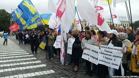 Зранку у Харкові прихильники та супротивники "мовного закону" пікетували сесію облради, там одночасно проходило три мітинги.