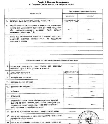 Про це йдеться в його декларації, розміщеній на сайті ЦВК.