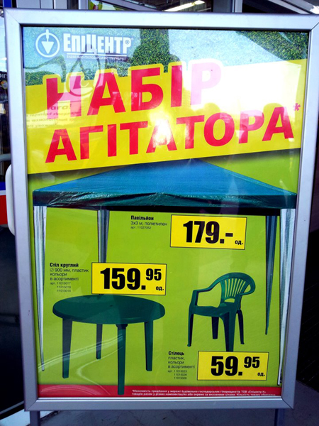 Один з найбільших будівельних гіпермаркетів "Епіцентр" пропонує всім бажаючим придбати напередодні виборів "набір агітатора".