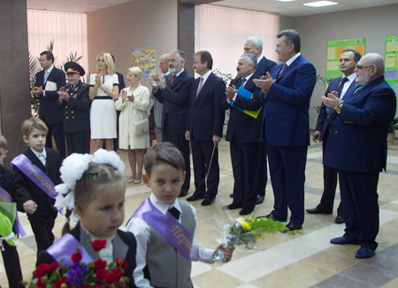 Як повідомляє прес-служба президента, Янукович привітав дітей, їх батьків і педагогів із початком нового навчального року, перерізав символічну стрічку та оглянув приміщення оновленої школи - зокрема, комп’ютерний клас, спортзал, актовий зал та один із лінгафонних кабінетів.