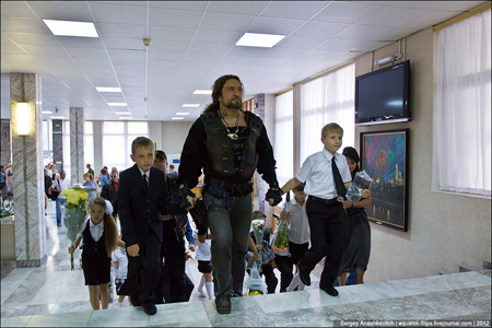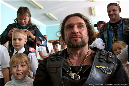 1 вересня в Севастопольській школі № 8 Міноборони РФ ім. 850-річчя Москви школярів відвідав лідер байкерського клубу "Нічні вовки" на прізвисько Хірург.