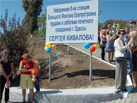"Набережна 8-ї станції Великого Фонтану впорядкована трудами і турботами почесного громадянина м. Одеси Сергія Ківалова", - свідчить табличка.