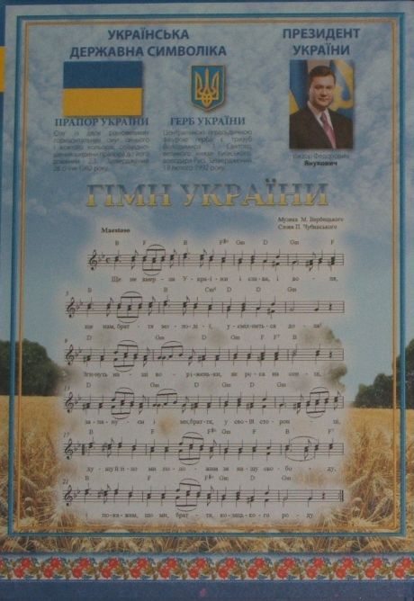 На перших сторінках щоденника також містяться фотографія президента Віктора Януковича, пам'ятка про державні символи, гімн України, а також мапа нашої держави і основні події її історії.