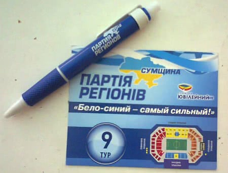 Партія регіонів у Сумах роздає квитки на футбол в обмін на телефонний номер.