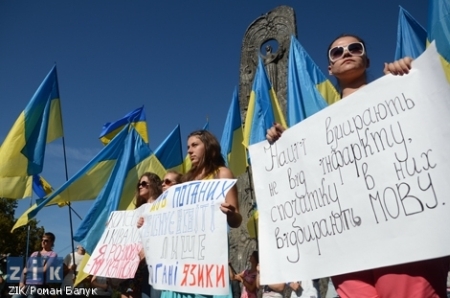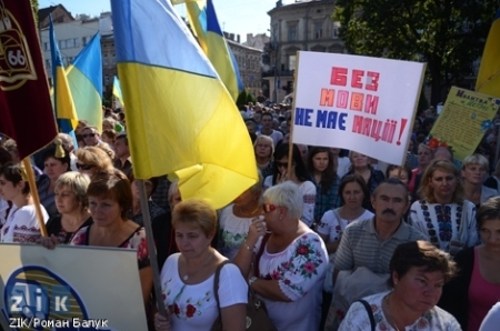 У Львові відбулося мирне освітянське віче на захист української мови.