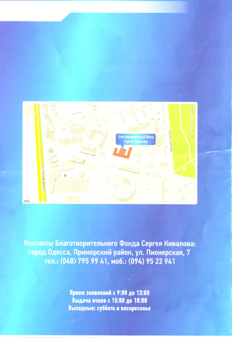 У фонду немає інтернет-сайту. За адресою, що зазначена на листівці, знаходиться "Училище швейне № 2 Одеської національні юридичної академії". Як відомо, Ківалов є ректором цієї академії.