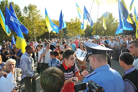 Співробітники міліції намагалися відтіснити підприємців ринку "Привоз", які пікетували будівлю Одеської облдержадміністрації під час візиту президента.