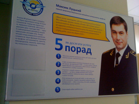 На адресу Української правди надійшов лист про те, що в одній зі шкіл, розташованій на території округу, висить плакат з обличчям Луцького.