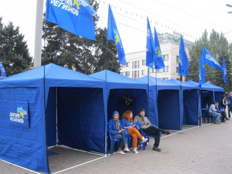 Яковлєв при цьому уточнив, що на площі ім. Леніна були виставлені близько 15 агітаційних наметів "Партії регіонів".