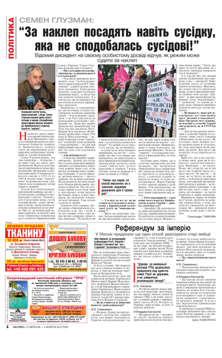 "По-друге, цього тижня ми розмістили на першій шпальті газети спеціальний банер акції, у номері також опубліковане інтерв’ю з Семеном Глузманом, де він розповідає як особисто став жертвою дії закону про наклеп. По-третє, з першого дня акції спеціальний банер розміщений на головній сторінці сайту "Експресу", - заявив Починок .