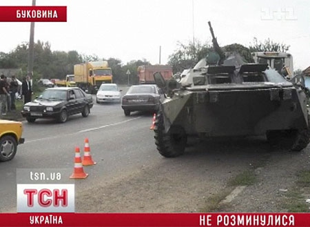 У Чернівецькій області бронетранспортер БТР-80 врізався у маршрутку з пасажирами.