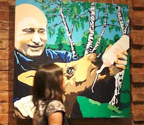 7 жовтня відкриється виставка пітерського художника Олексія Сергієнка "Президент. Доброї душі людина", присвячена відомим сюжетам: дружбі Путіна й Сільвіо Берлусконі, польоту з журавлями, поїздці з байкерами. У церемонії її відкриття візьмуть участь чорні лабрадори.