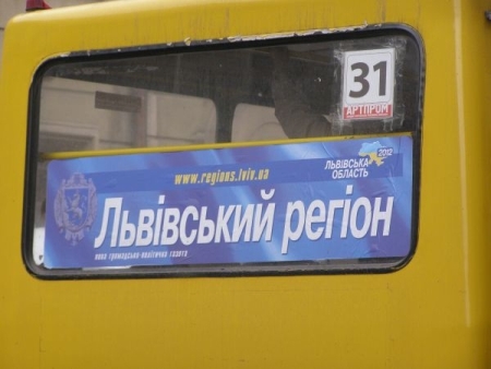 Маршрутні таксі Львова вийшли в рейс із рекламою газети, засновником якої є Львівський обласний осередок Партії регіонів.