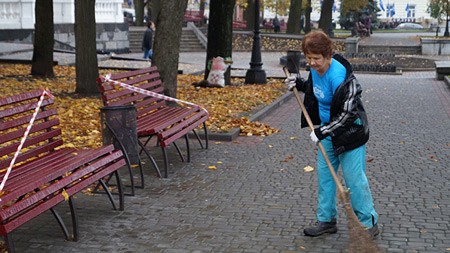 За словами місцевої двірнички: "До нас зараз Азаров приїде, виступати буде. А люди тут зараз всі засмітять, заплюють".
