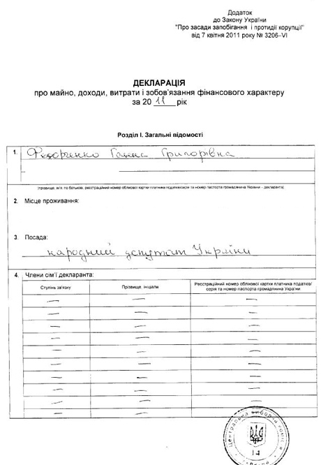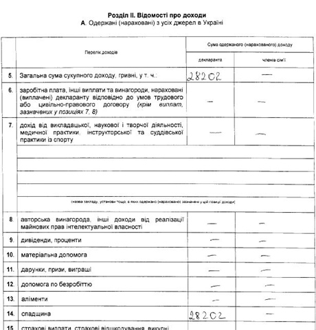 Так, у 2011 році Федорченко у спадщину отримала 28 202 гривні.