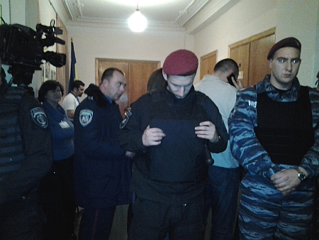 На місце прибули представники "Беркуту", які виставили кордон перед столом ОВК.