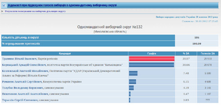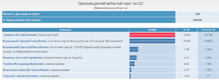 В 132 окрузі замість опозиціонера Аркадія Корнацького, перемогу якого напередодні визначила ОВК, переможцем зафіксували "регіонала" Віталія Травянка, повідомляє Преступности. НЕТ.