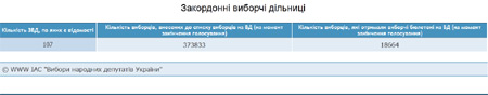 В той же час, дані на сайті ЦВК свідчать про те, що по закордонному округу кількість виборців, які отримали виборчі бюлетені на момент закінчення голосування – 18664.