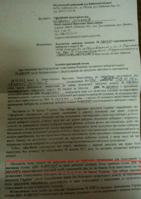 Всі скарги написані з одним і тим же формулюванням: визнання протиправним рішення ДВК і щодо неправомірного недопущення на засідання офіційного спостерігачі.