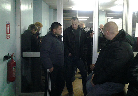 Як передає кореспондент Української правди, коридор перед залом суду повністю був зайнятий хлопцями у спортивній формі, які начебто мають посвідчення журналістів, однак відмовлялися їх показати.