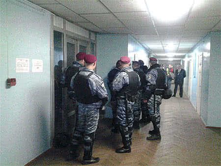 Вхід на 10 поверх, де знаходиться зала суду, охороняло близько 20 "беркутівців".