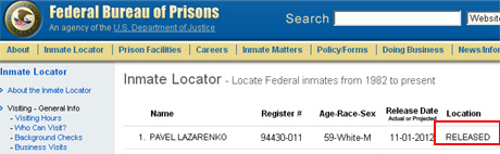 Водночас Бюро тюрем США офіційно повідомляє тільки про звільнення Лазаренка з тюрми Terminal Island, де закінчився термін його ув'язнення.