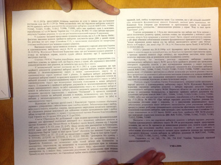 Як відомо, щодо роботи окружної виборчої комісії №194 у Черкасах станом на 31 жовтня було направлено до суду 200 скарг від провладних і технічних кандидатів.