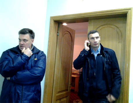 Після цього лідер опозиції зазначив, що вони планують передати главі ЦВК вимогу щодо прозорості підрахунку голосів на виборах, зокрема, щодо 12 округів. Після того, як Яценюк, лідер "УДАРу" Віталій Кличко та лідер "Свободи" Олег Тягнибок зайшли до залу ЦВК глава комісії Олександр Шаповал залишив засідання та піднявся до свого кабінету.