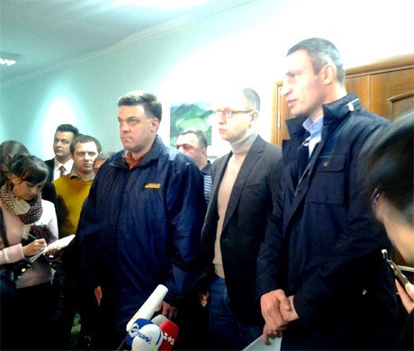 Яценюк також додав, що опозиція згодна на повторні вибори в округах, де знищили документи, і закликав мітингувальників не розходитись до 18.00.
