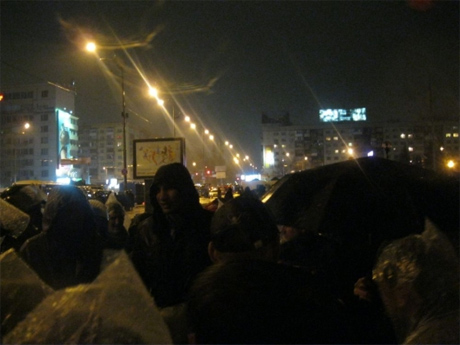 На майдані перед ЦВК, незважаючи на дощ, люди простояли всю ніч на знак протесту проти фальсифікації виборів.