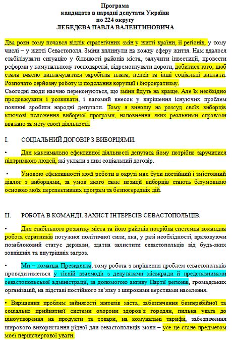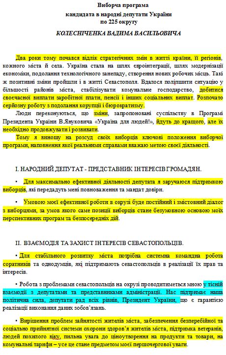 Програми інших "регіоналів", які висувалися в депутати, наприклад, у Криму, відрізняються значно більше, ніж дві наведені тут.