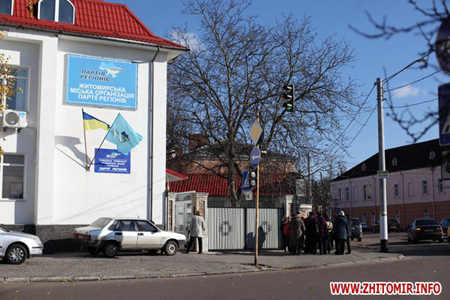 Близько 20 людей в середу вимагали біля офісу виборчого штабу Партії регіонів виплати заробітної плати за 2 місяці роботи на партію під час виборів.