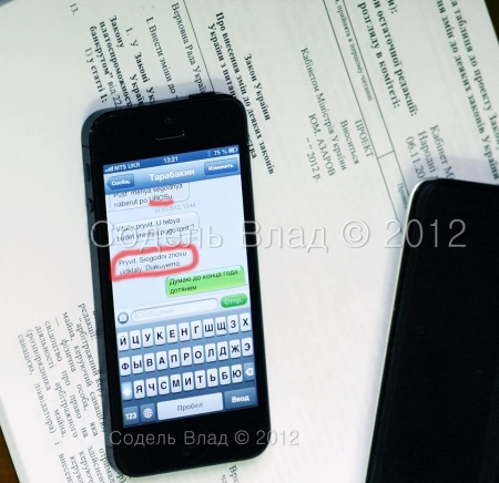 Про це свідчить фото з повідомленням IPhone депутата, яке опублікував на своїй сторінці в мережі Facebook фотокореспондент Влад Содель.