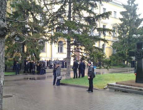 Біля "Жовтневого палацу" у Києві, де проходитиме координаційна нарада щодо протидії корупції за участю президента, зібралася черга з прокурорів.