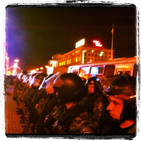 Близько 100 бійців спецпідрозділу "Беркут" перекрили їм дорогу. Після чого виникла сутичка. Активісти намагалися прорвати міліцейський кордон.