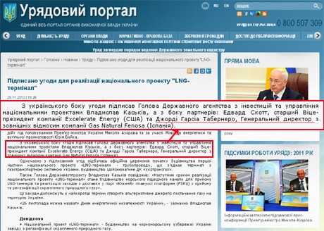 Так, на сайті уряду зазначається, що угоди підписували Генеральний директор зовнішніх відносин компанії Gas Natural Fenosa Джорді Гарсіа Табернеро та старший Віце-президент компанії Excelerate Energy Едвард Скотт.
