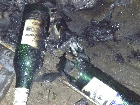 Від однієї з пляшок, що розбилися, почалося загоряння вагончика, яке було загашено охоронцем.