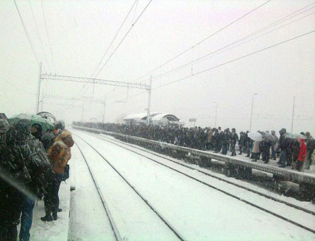 | Міська електричка зупинилась через сніг |