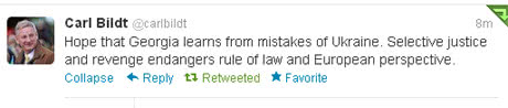 Міністр закордонних справ Швеції Карл Більдт висловив сподівання, що Грузія не припуститься помилок, які зробила Україна з переслідуванням опозиції.