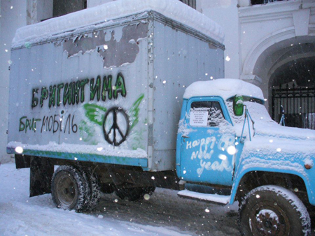 У неділю вранці невідомі особи пошкодили автомобіль народного депутата Олександра Бригинця, який в суботу був встановлений на вході до Гостинного двору в Києві.