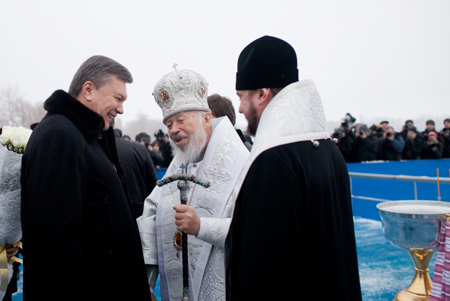 Президент Віктор Янукович взяв участь у святкуванні Водохрещі у Свято-Покровському соборі Києва.