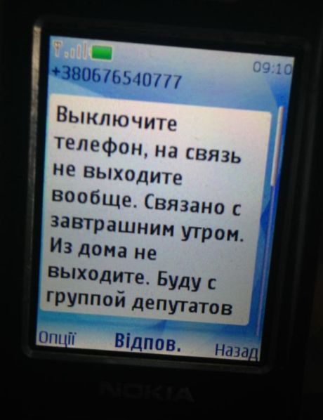 Такі смс прийшли вночі членам фракції "Батьківщина", зокрема Григорію Немирі |