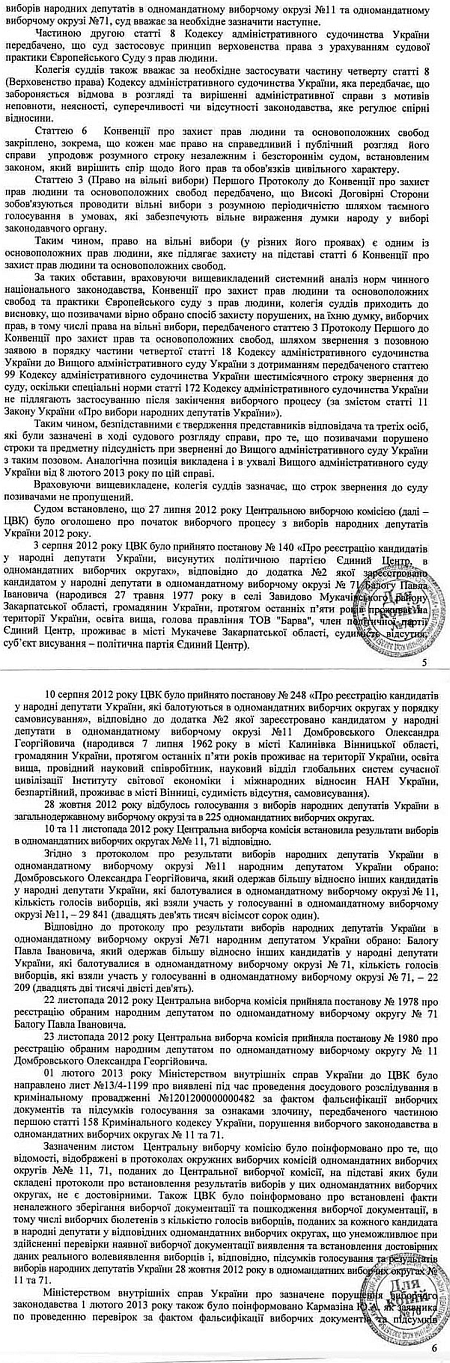 На думку суддів, права Кармазіна були порушені внаслідок реєстрації Балоги і Домбровського депутатами.