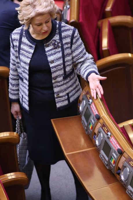 Депутат від Партії регіонів Ганна Герман у Верховній Раді зірвала з пульта для голосування наліпку "Голосую лише за себе".