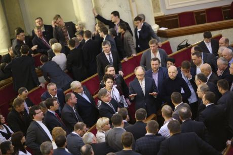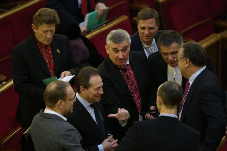 Депутати "Батьківщини" та "Свободи" перебувають у залі, багато з них одягнені у вишиванки.