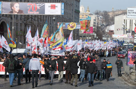 25 лютого, у день проведення у Брюсселі саміту Україна – ЄС, у Києві представники опозиції влаштували марш протесту проти політичних репресій.