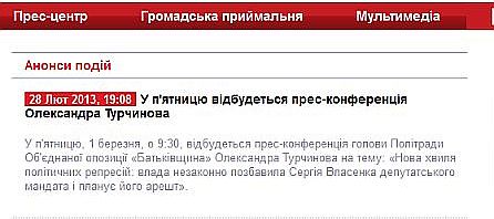 Прес-служба "Батьківщини" анонсувала прес-конференцію на 9:30 саме за такою назвою: "Нова хвиля політичних репресій: влада незаконно позбавила Сергія Власенка депутатського мандата і планує його арешт".
